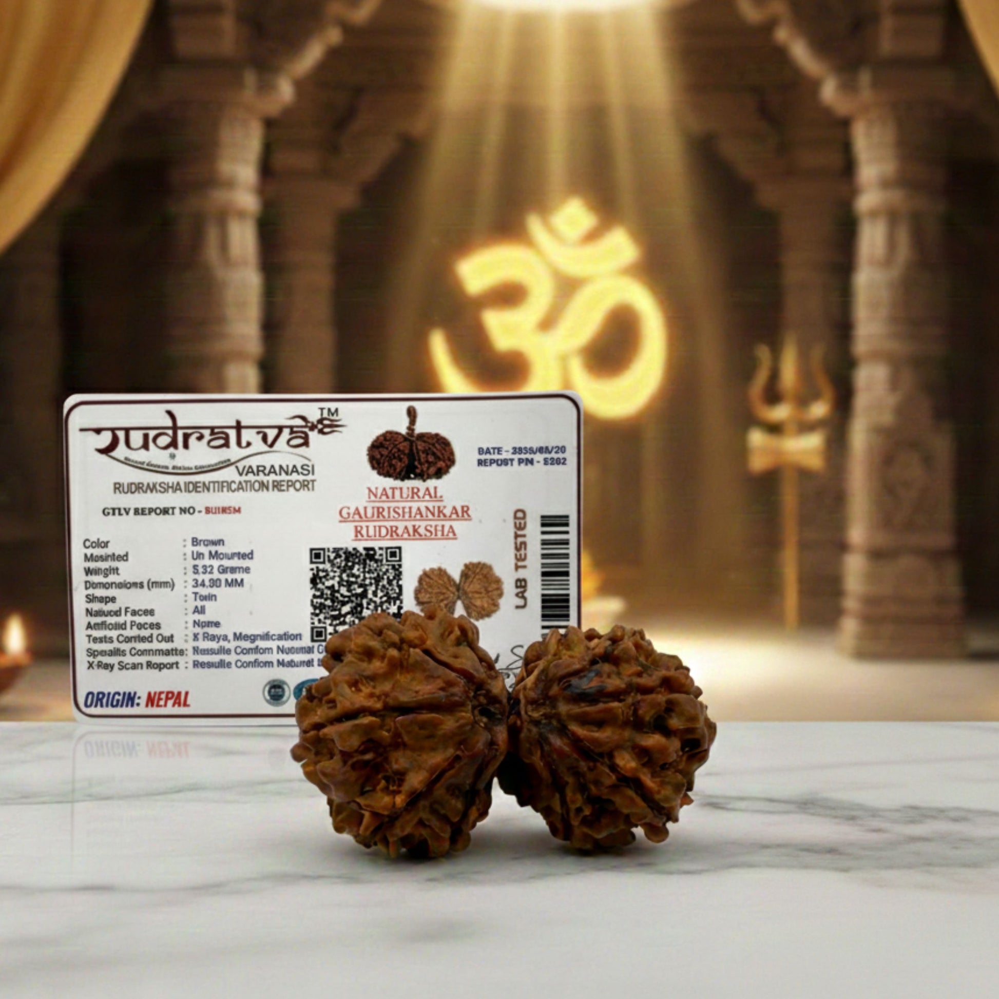 Gauri Shankar Rudraksha (34mm) – Original Sacred Bead for Marital Harmony, Love & Shiva–Parvati Blessings