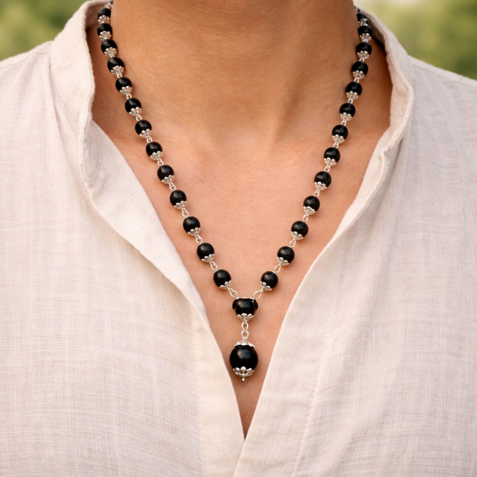 Wearing this pendant mala strengthens the aura, balances energy, and supports meditation and spiritual practices. It is ideal for daily wear, japa, and as a Vastu remedy for positivity and protection.